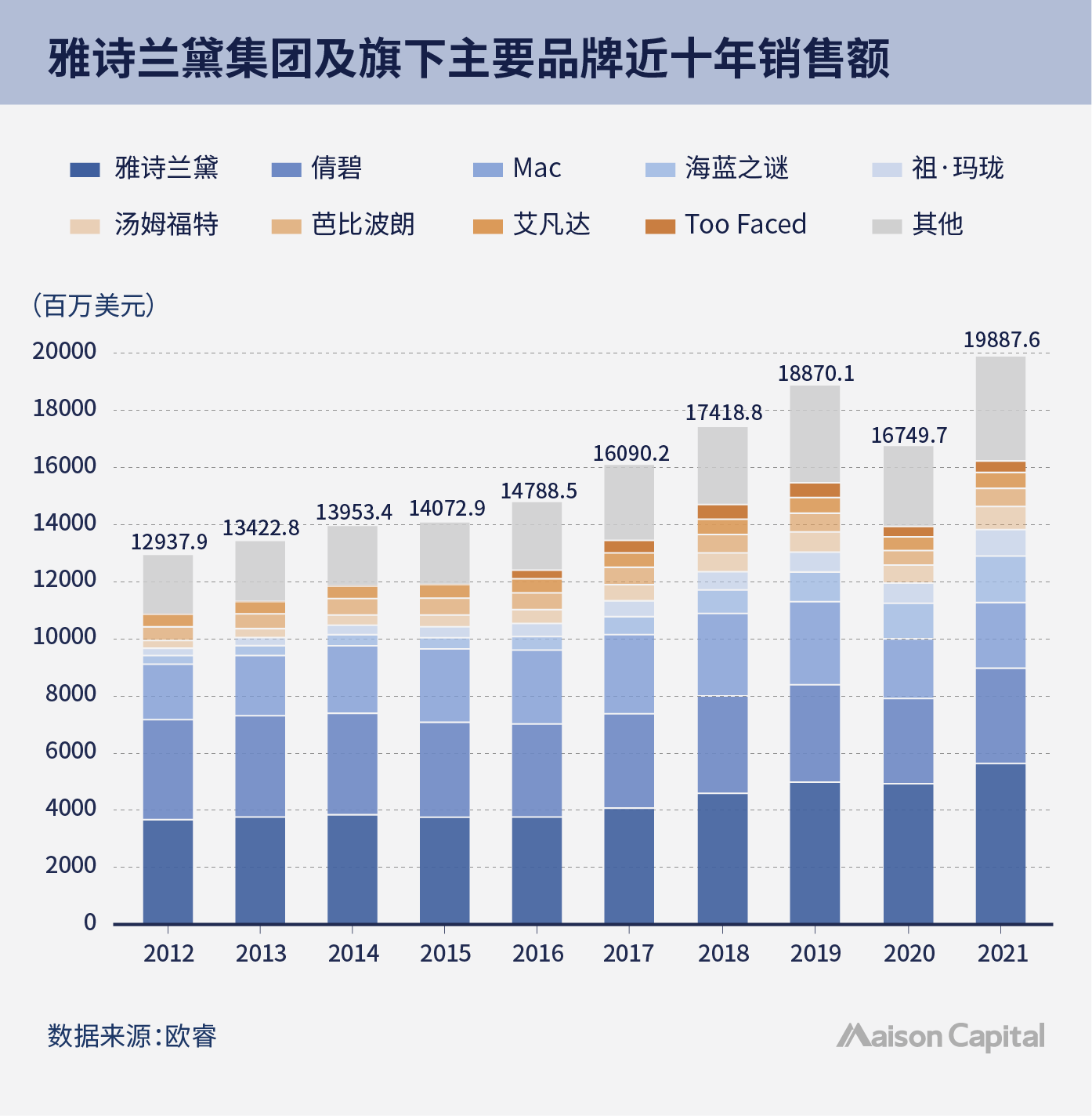 1970年代,雅诗兰黛公司不断打造“美”的生活方式,拓展品类和场景,树立品牌形象 (elegant,successful,sensual and smart) ,1970-1980年期间销售额就从5000万美元增长到近7亿美元。集团旗下的高端品牌La Mer2002年进入中国市场时,限量发行60瓶500ml装面霜,单瓶定价为1.4万元人民币。