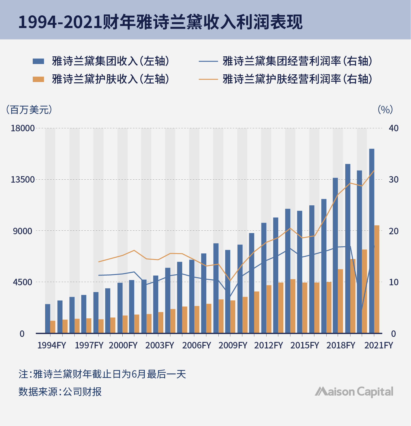 在贯彻高端定位和品牌信仰的前提下,雅诗兰黛集团通过不断研发和营销投入,传递理念以建立消费者心智。尽管人群代际和渠道流量不断发生更迭,核心品牌和集团整体仍然实现了业绩长期增长和利润回报,抵抗周期的衰败考验。